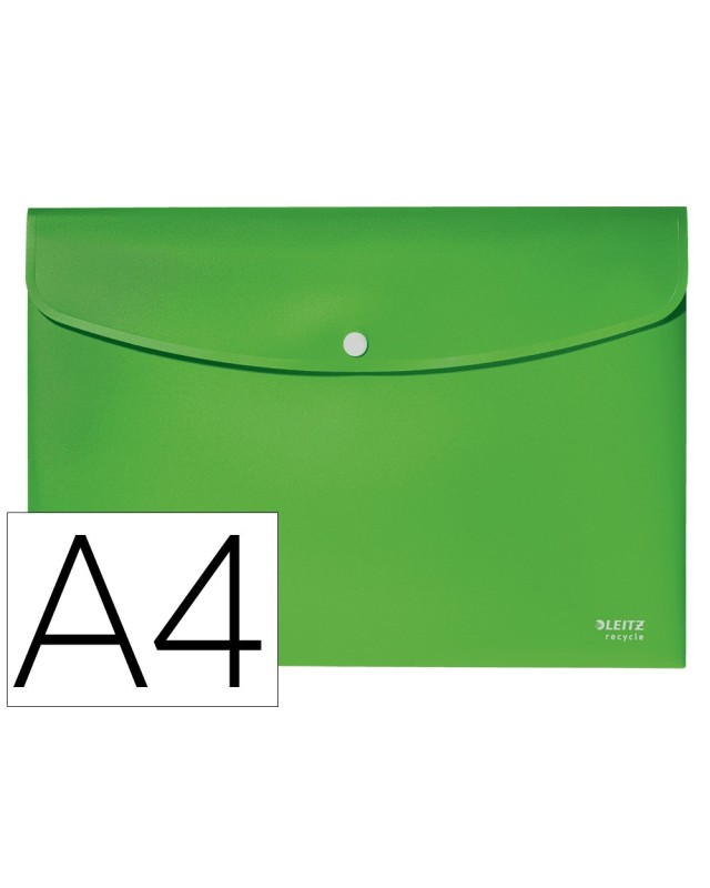 Sobre para documentos de polipropileno llamativo y de primera calidad parauso diario en la escuela, la oficina y el hogar, con cierre de botón para evitar que los documentos se salgan. Fabricado con un 80% de plástico rec iclado, neutro para el clima gracias a la reducción y compensación de CO2,100% reciclable y con certificación medioambiental Blue Angel. Este robus to y práctico sobre para documentos complementa perfectamente otros productos de la gama Leitz Recycle y está hecho para durar. Producto de papelería ecológica, moderno y contemporáneo que quedará genial en casa y en la oficina. Con la gama ecológica Recycle de Leitz puedes mejorar tanto el entorno de tu oficina como el medio ambiente de nuestro planeta.