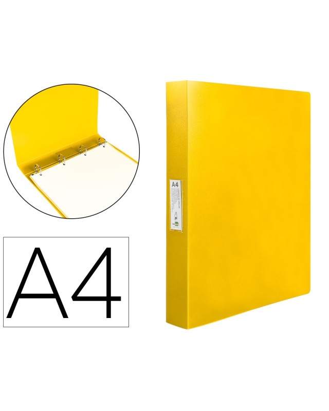 Carpeta liderpapel 4 anillas 25 mm mixtas polipropileno din a4 amarillo fluor opaco