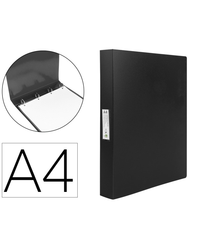 Carpeta liderpapel 4 anillas 25 mm mixtas polipropileno din a4 negro opaco