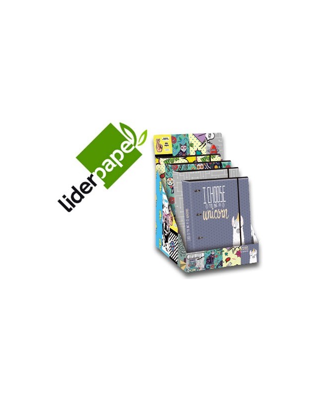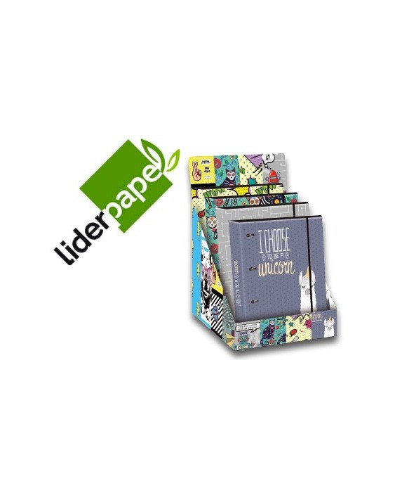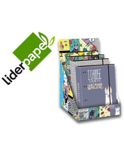 Carpeta liderpapel 4 anillas 40 mm forrada din a4 con recambio y gomilla fantasia 120h 70g 5mm expositor 10