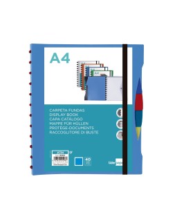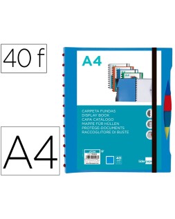 Carpeta liderpapel a4 con 40 fundas intercambiables 5 sep sobre y gomilla portada y lomo personalizable azul