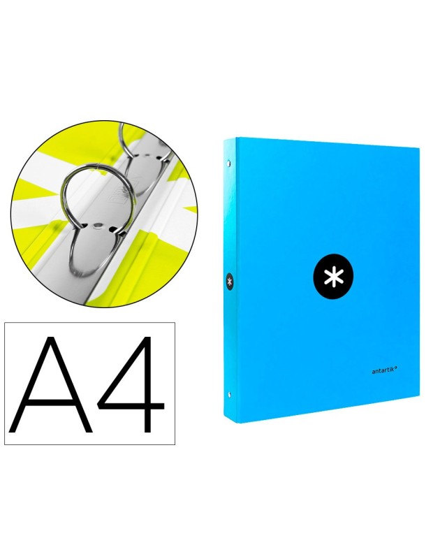 Carpeta antartik a4 forrada 4 anillas 25 mm redondas color azul