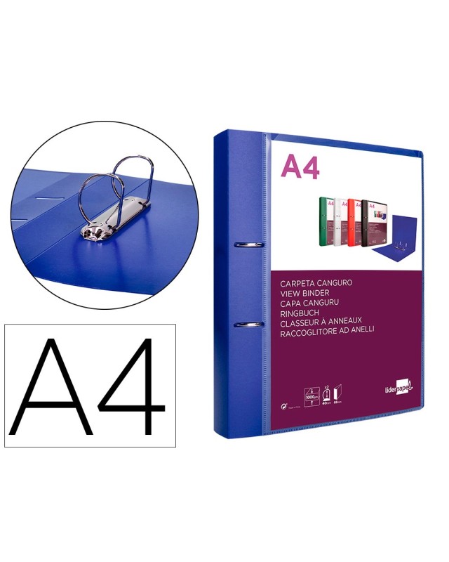 Carpeta liderpapel canguro 2 anillas 40 mm mixtas polipropileno din a4 azul translicudo