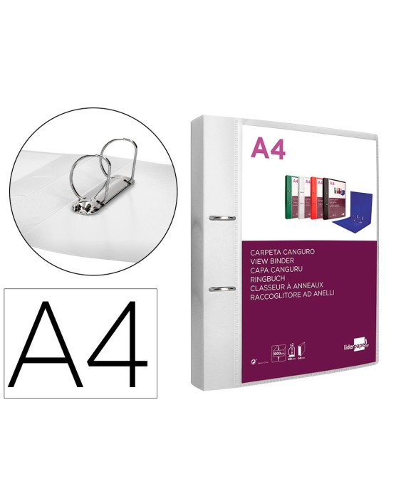 Carpeta liderpapel canguro 2 anillas 40 mm mixtas polipropileno din a4 transparente
