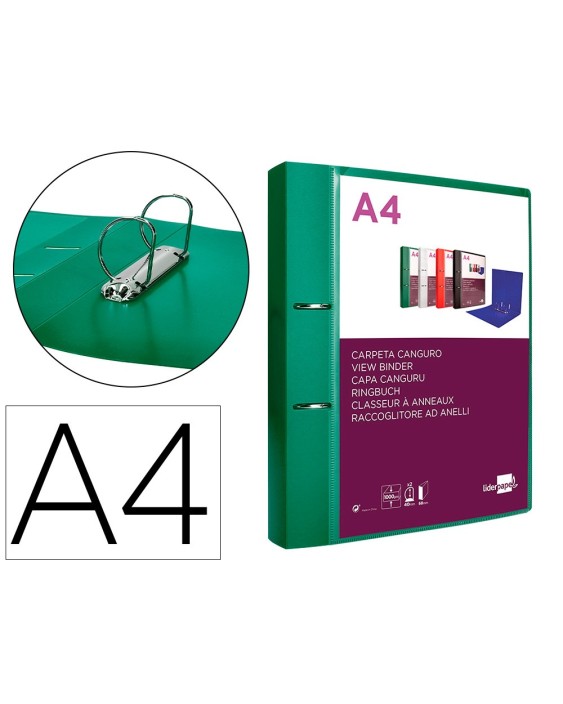 Carpeta liderpapel canguro 2 anillas 40 mm mixtas polipropileno din a4 verde translicudo