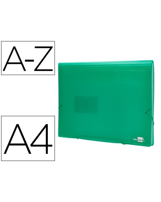 Carpeta liderpapel clasificador fuelle 32113 polipropileno din a4 verde transparente 13 departamentos
