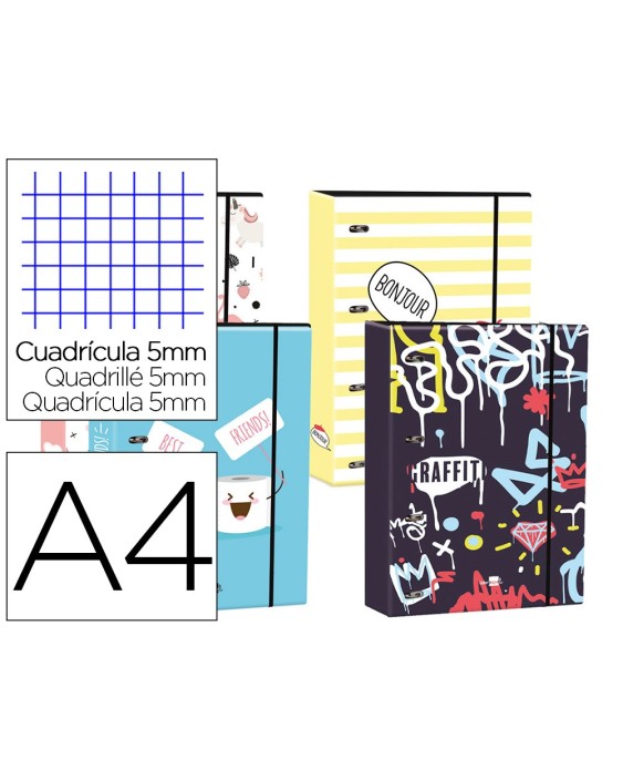 Carpeta liderpapel din a4 forrada con recambio 120 hojas 80 gr 5 mm 4 an. redondas 40 mm cierre goma