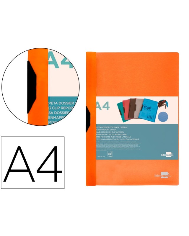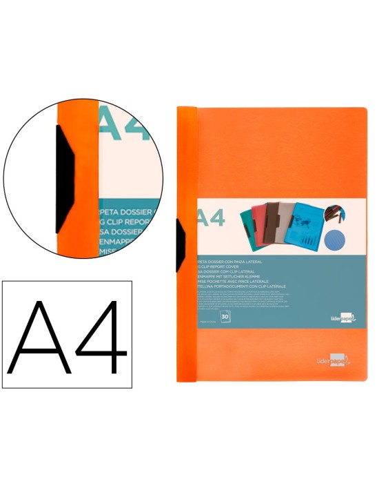 Carpeta liderpapel dossier pinza lateral polipropileno din a4 naranja fluor opaco 30 hojas pinza deslizante