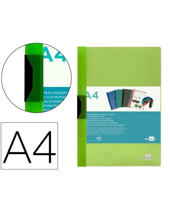 Carpeta liderpapel dossier pinza lateral polipropileno din a4 verde translucido 60 hojas pinza deslizante