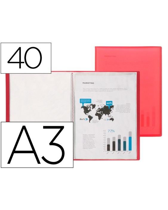 Carpeta liderpapel escaparate 40 fundas polipropileno din a3 rojo translucido