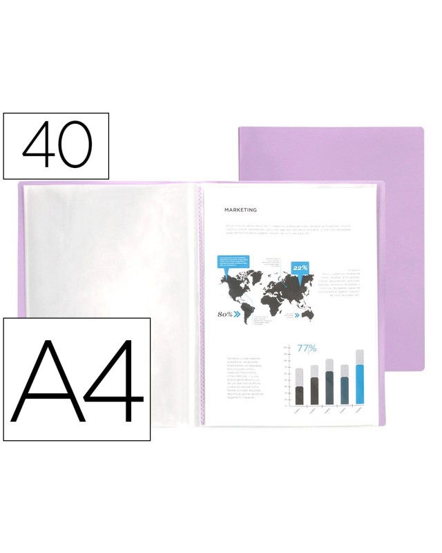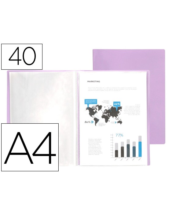Carpeta liderpapel escaparate 40 fundas polipropileno din a4 lavanda opaco