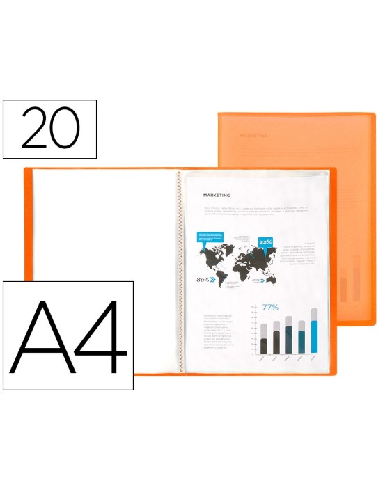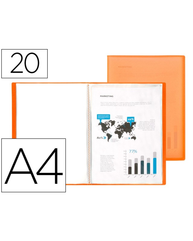 Carpeta liderpapel escaparate 47041 20 fundas polipropileno traslucida din a4 naranja frosty