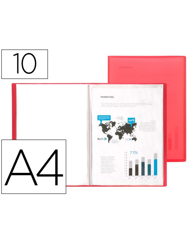 Carpeta liderpapel escaparate 47480 10 fundas polipropileno din a4 rojo translucido