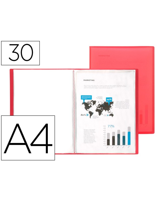 Carpeta liderpapel escaparate 47490 30 fundas polipropileno din a4 rojo translucido