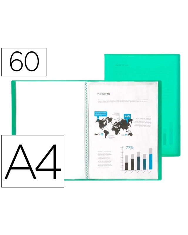 Carpeta liderpapel escaparate 60 fundas polipropileno din a4 verde translucido