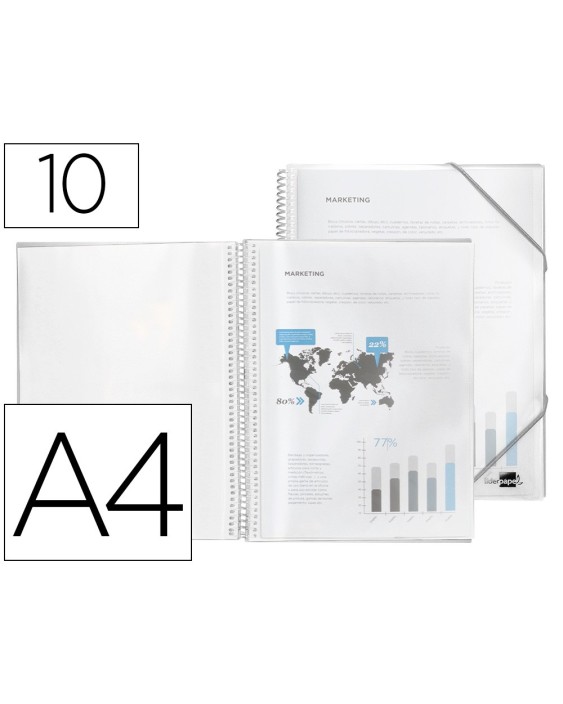 Carpeta liderpapel escaparate con espiral 10 fundas polipropileno din a4 transparente