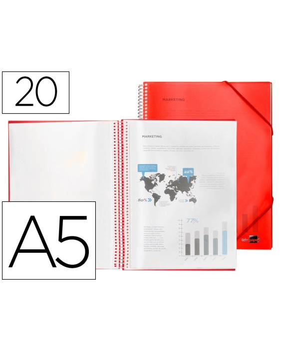 Carpeta liderpapel escaparate con espiral 20 fundas polipropileno din a5 roja