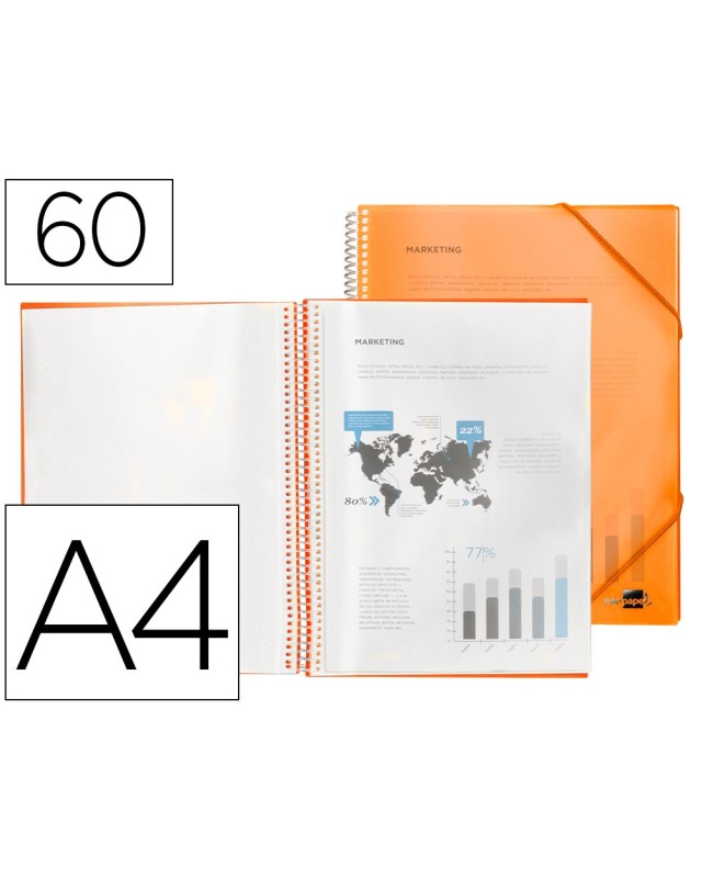 Carpeta liderpapel escaparate con espiral 60 fundas polipropileno din a4 naranja