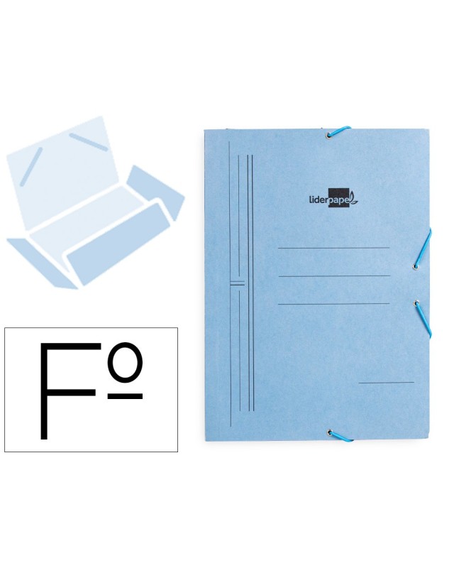 Carpeta liderpapel gomas tres solapas carton pintado folio color azul