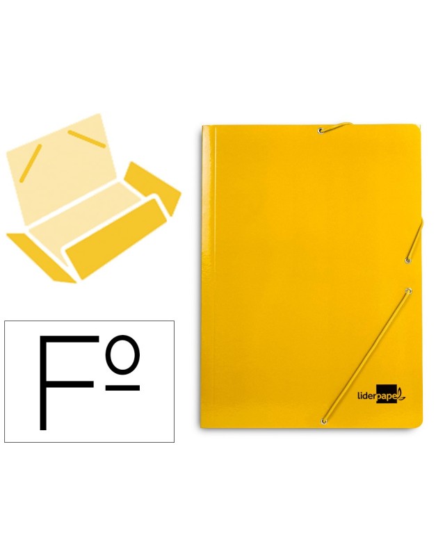 Carpeta liderpapel gomas tres solapas carton plastificado folio color amarillo