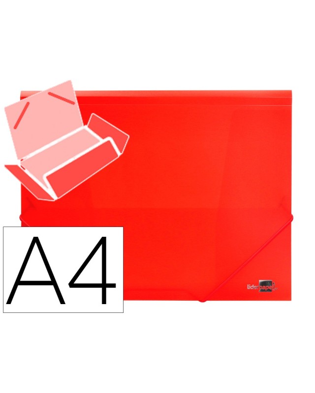 Carpeta liderpapel gomas tres solapas polipropileno din a4 color rojo translucido