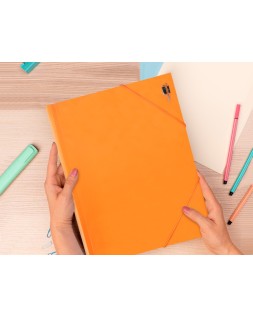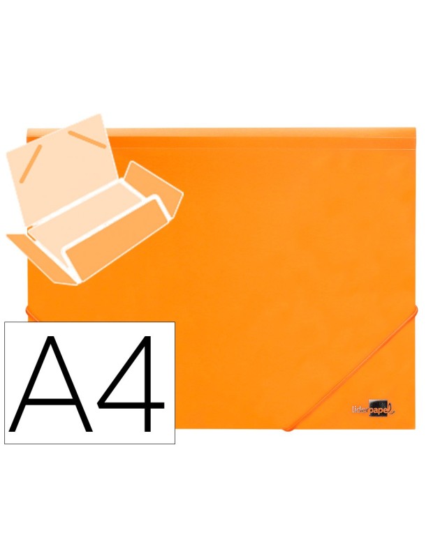 Carpeta liderpapel gomas tres solapas polipropileno din a4 color naranja opaco