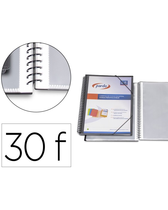 Carpeta pardo escaparate con espiral 30 fundas folio personalizable color negra
