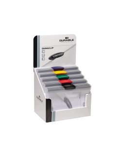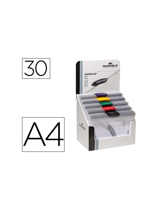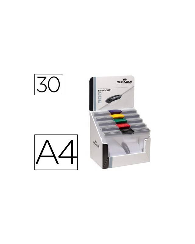 Carpeta con pinza giratoria y tapas rígidas translúcidas de polipropileno de 400 micras. Ideal para presentaciones y archivo, es cómoda y fácil de usar. Pinza elíptica de apertura lateral en atractivos colores. Pinzas en colores surtidos. Formato DIN A4. Capacidad: 30 hojas.