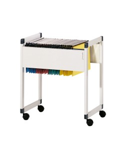 Carro extensible para carpetas colgantes formato DIN A4, folio o folio prolongado. Capacidad aproximada: 45 carpetas. Tapa lateral que impide que caigan los contenidos. Con ruedas. Color gris texturado. No incluye carpetas. Medidas: 405 x 690 x 600 mm.