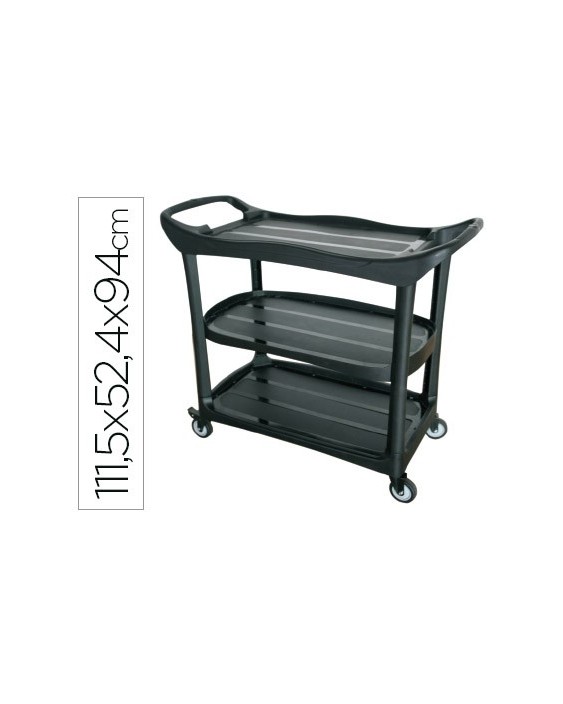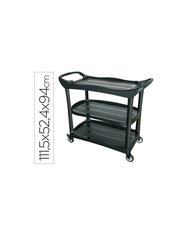 Carro de servicio multifuncional q-connect 3 estantes plastico 1115x524x940 mm
