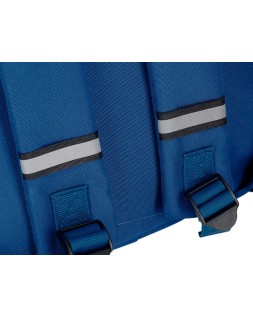 Mochila práctica y resistente, ideal para transportar el material escolar y los efectos personales. Dispone de bolsillo frontal, de bolsillo trasero de seguridad y de bolsillos laterales, uno de ellos con banda elástica. Parte trasera acolchada para mayor confort. Tirantes ajustables acolchados con detalles reflectantes. Bolsillo interior para portátil de 15\". Dispone de asas con broche metálico. Adaptable a carrito portamochilas. Capacidad: 13,5 l. Disponible en varios colores. Medidas: 300 x 390 x 115 mm.