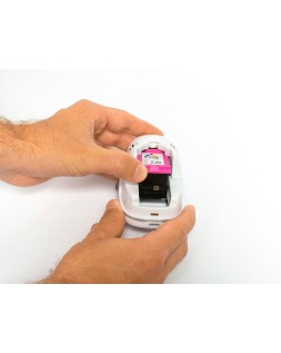 El cartucho E-Mark de tinta tricolor (amarillo, cian y magenta) permite la impresión a todo color en casi todas las superficies absorbentes. Calidad de impresión 600 ppp. Tipo C2. Hasta 5000 impresiones. Ciclos de limpieza automáticos y manuales. Fácilmente reemplazable en pocos pasos.