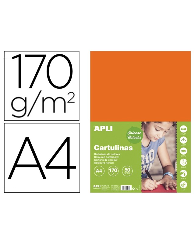 Cartulina naranja de 170 g/m² tamaño A4. Cada pack contiene 50 cartulinas.ideales para todo tipo de manualidades, lettering, scrapbooking, cubiertas, separadores, papiroflexia, impresión de documentos? gracias al tintado en masa, las cartulinas apli ofrecen unos colores más homogéneos y nítidos, libres de imperfecciones. Aptas para uso escolar, ya que están libres de ácidos. Además, dentro de la amplia gama de cartulinas apli podrás encontrar todos los colores que necesites.