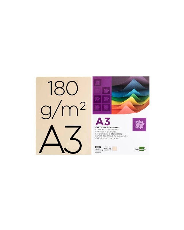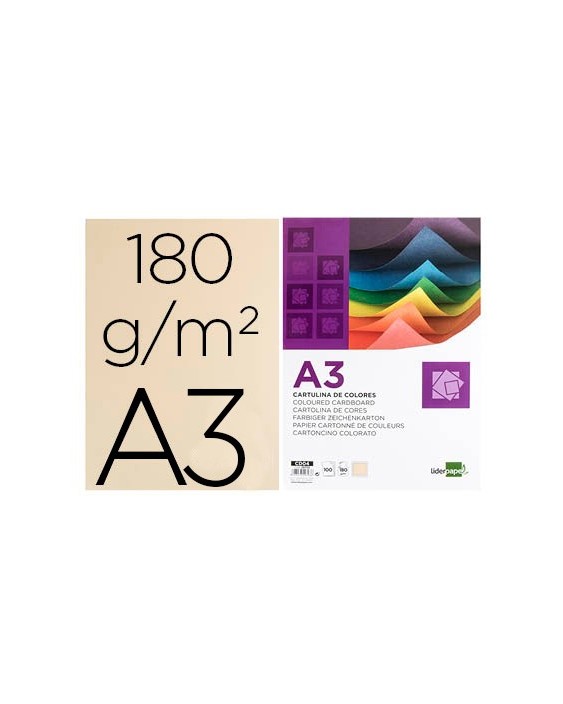 Cartulina liderpapel a3 180g/m2 crema paquete de 100 hojas