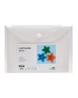 Cartulina liderpapel a4 180g/m2 blanco paquete de 25+5 hojas en carpeta dossier transparente con cierre velcro