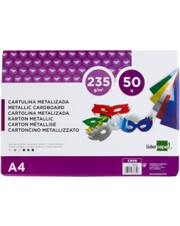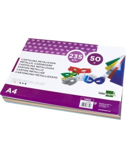 Cartulina liderpapel a4 235 g/m2 metalizada 5 colores surtidos paquete de 50 hojas