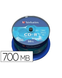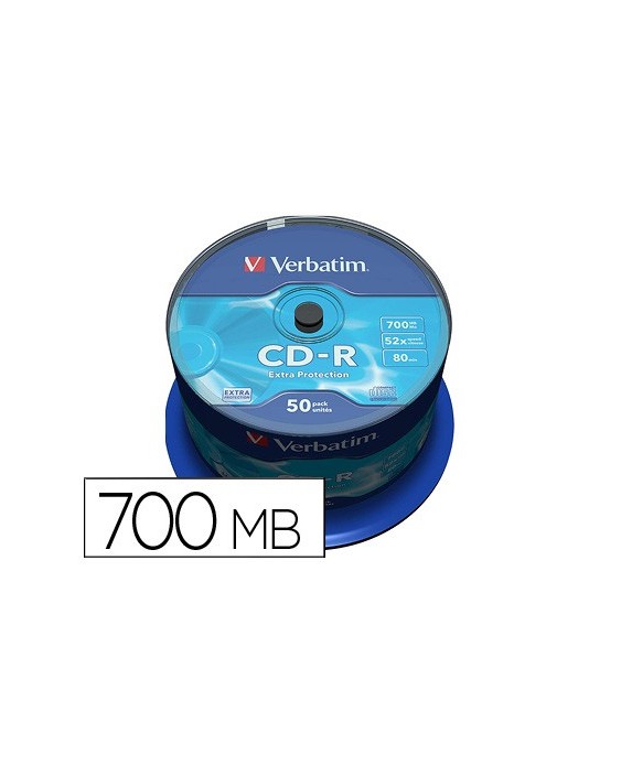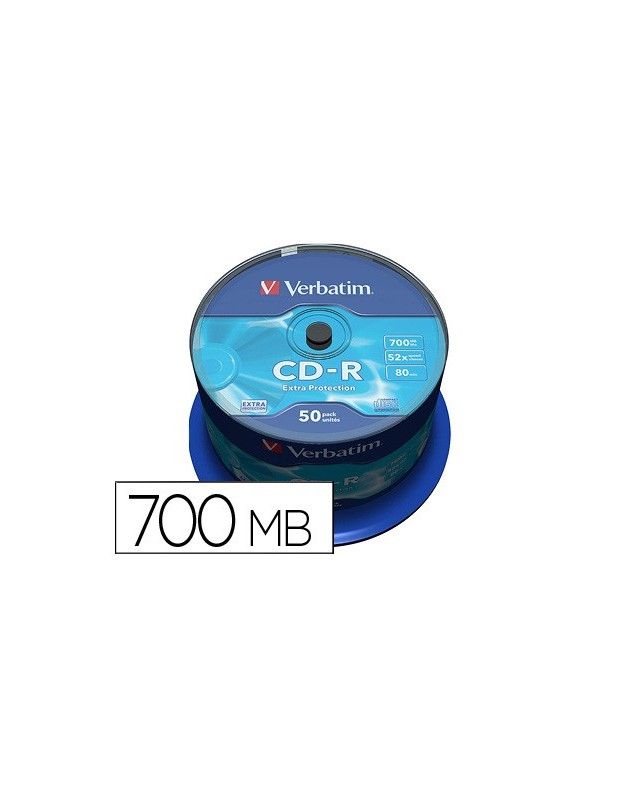 Cd-r verbatim capacidad 700mb velocidad 52x 80 min tarrina de 50 unidades