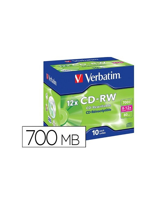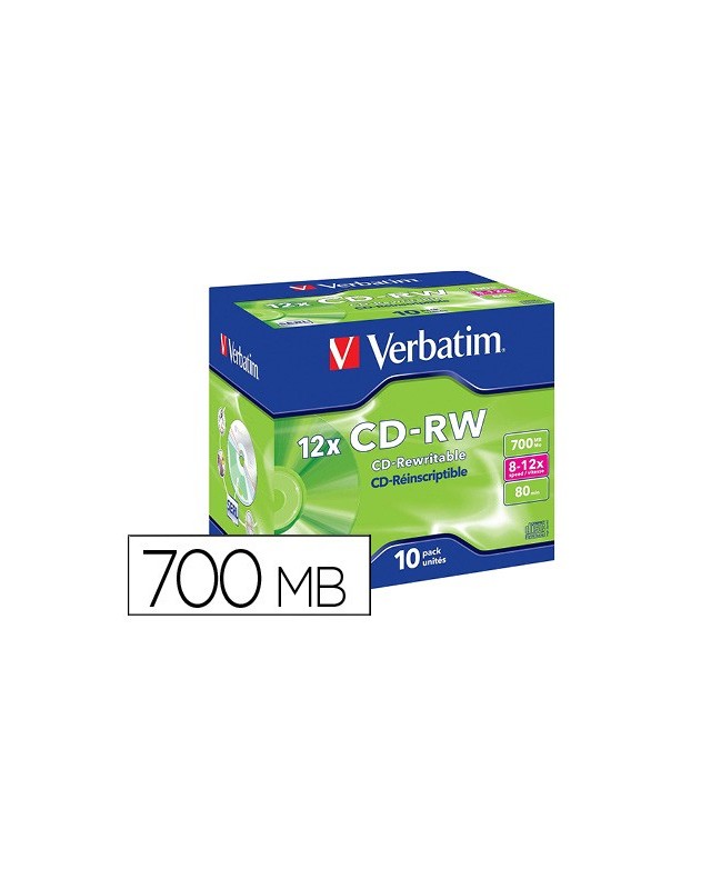Cd-rw verbatim serl capacidad 700mb velocidad 12x 80 min pack de 10 unidades