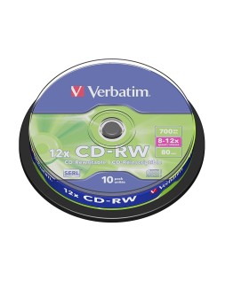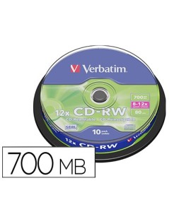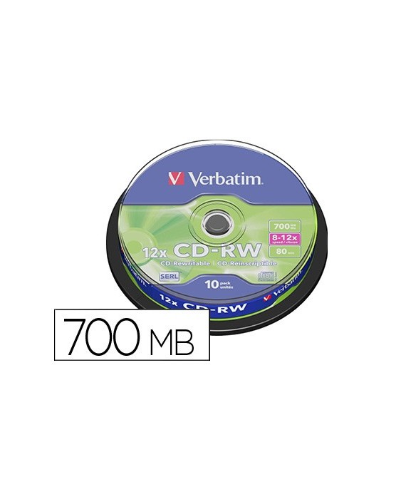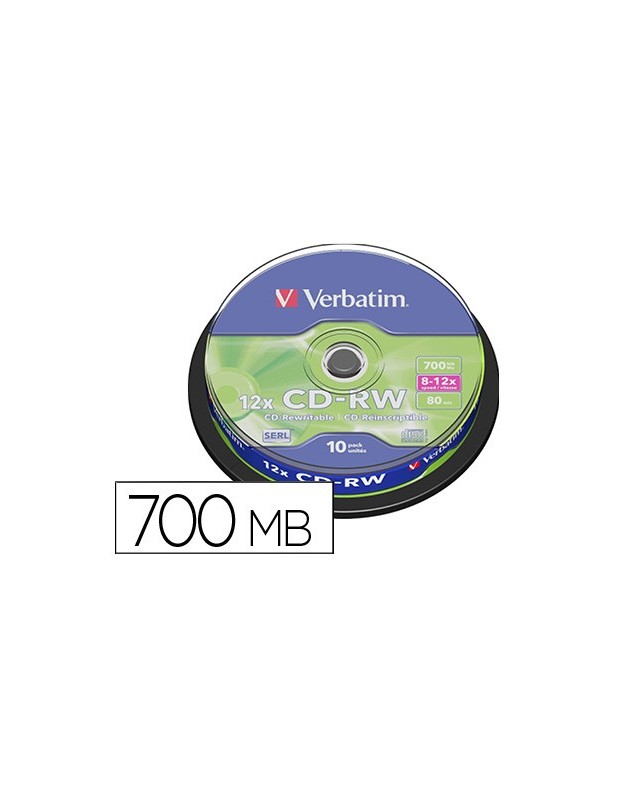 Cd-rw verbatim serl capacidad 700mb velocidad 12x 80 min tarrina de 10 unidades