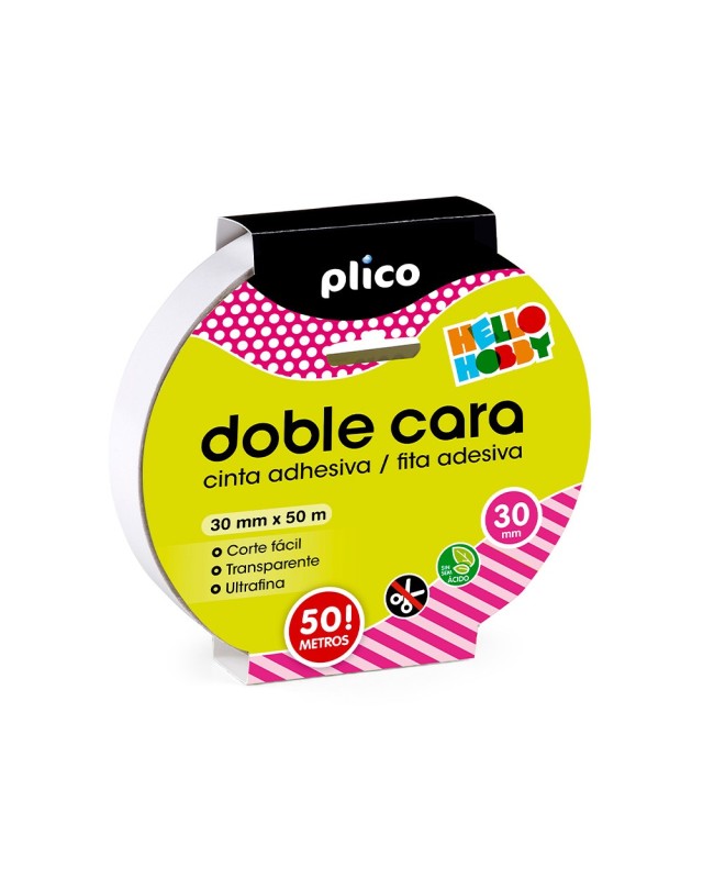Cinta de doble cara ideal para todas las manualidades realizadas con Goma EVA cartón, papel, textiles y cualquier trabajo de scrapbooking. No amarillea, al no contener ácido. Se corta fácilmente sin tijeras y resulta prácticamente imperceptible al ser ultra fina. 50 mt x 30 mm.