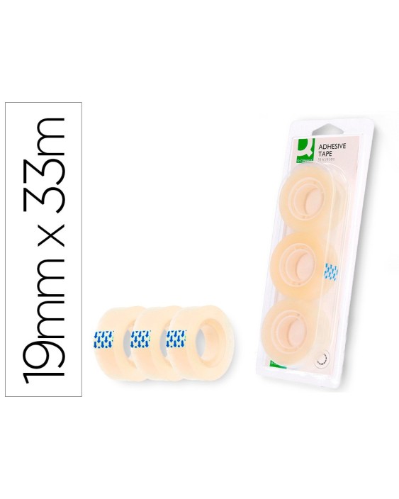 Cinta adhesiva q-connect 33 mt x 19 mm blister de 3 unidades