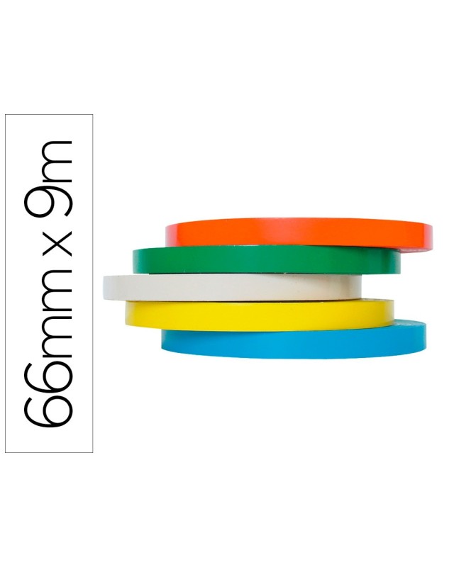 Cinta adhesiva q-connect 66 mt x 9 mm para cerrar bolsas pack 6 unidades colores surtidos