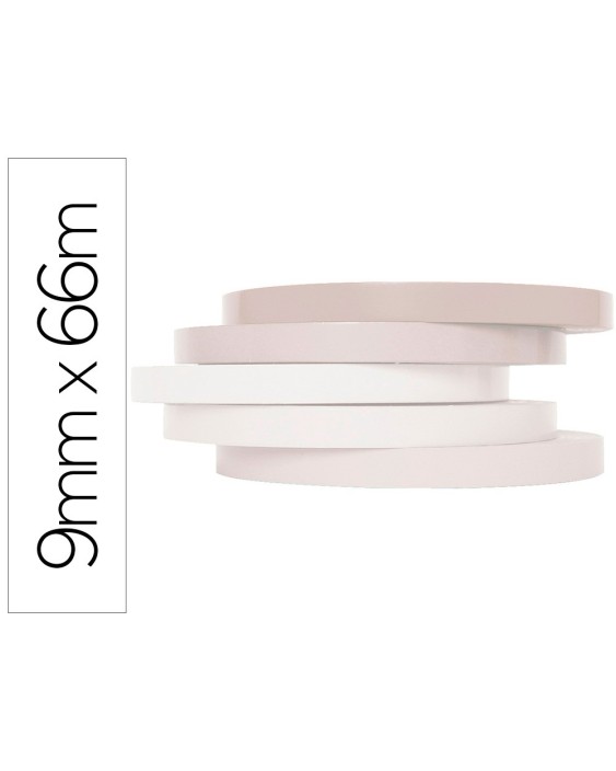 Cinta adhesiva q-connect 66 mt x 9 mm blanco para cerrar bolsas