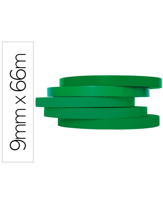Cinta adhesiva q-connect 66 mt x 9 mm verde para cerrar bolsas