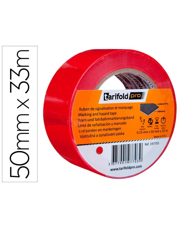 Cinta adhesiva djois para marcaje y señalizacion de suelo 33 mt x 50 mm color rojo