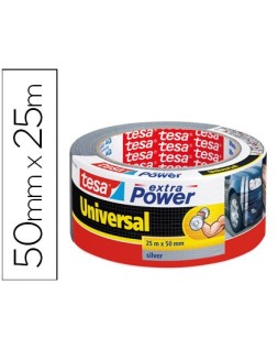 Cinta adhesiva resistente y fácil de cortar con las manos. Universal, es una solución rápida, fácil y útil para hobbies y aplicaciones en el hogar: manualidades, reparaciones, fijación, refuerzos, marcaje, etc. Libre de disolventes. Color plata. Medidas: 25 m x 50 mm.