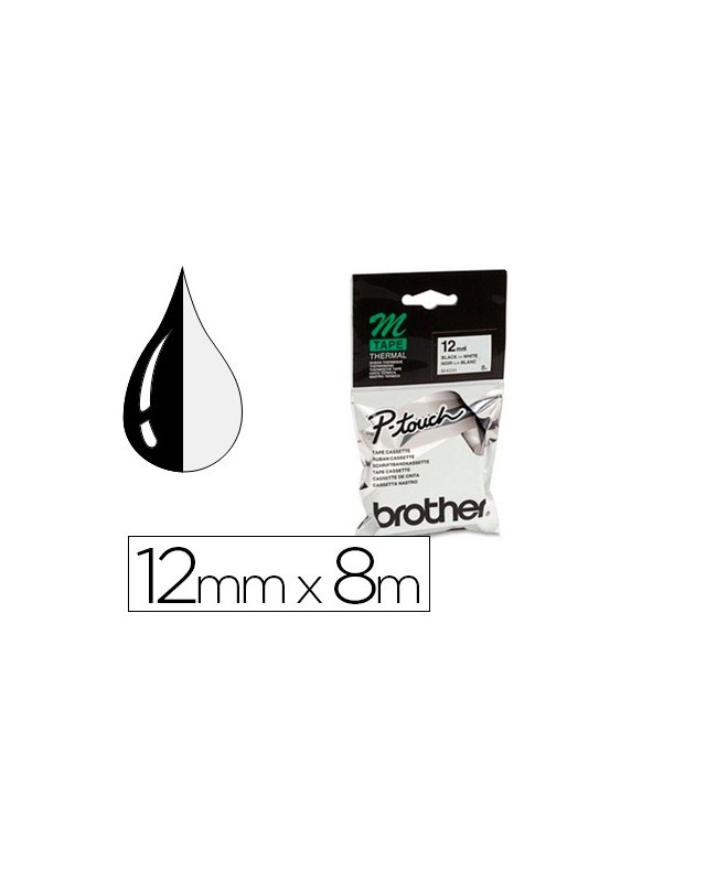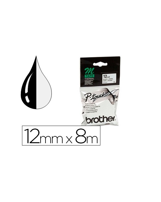 Cinta brother mk-231 blanco-negro 12mm longitud 8 mt