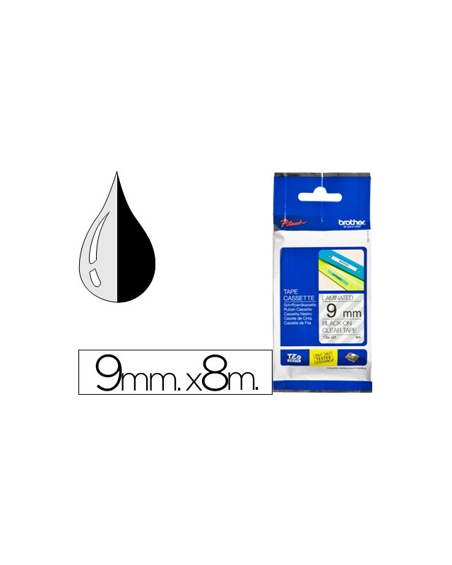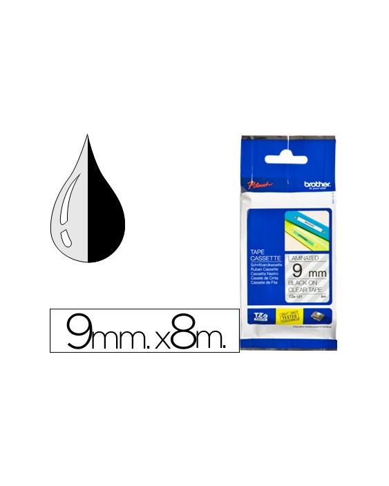 Cinta brother tze121 transparente-negro 9mm longitud 8 mt