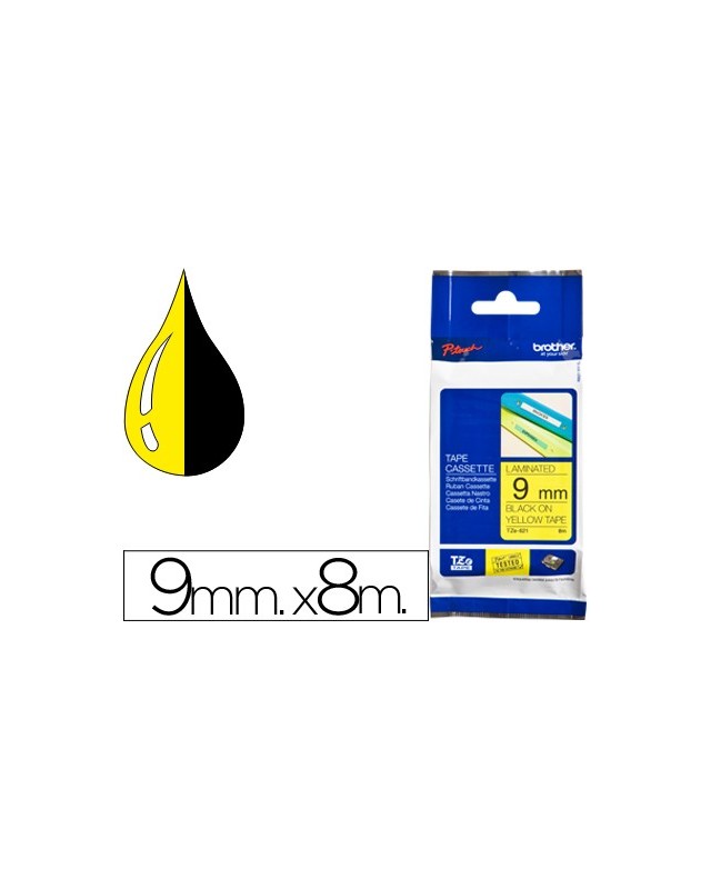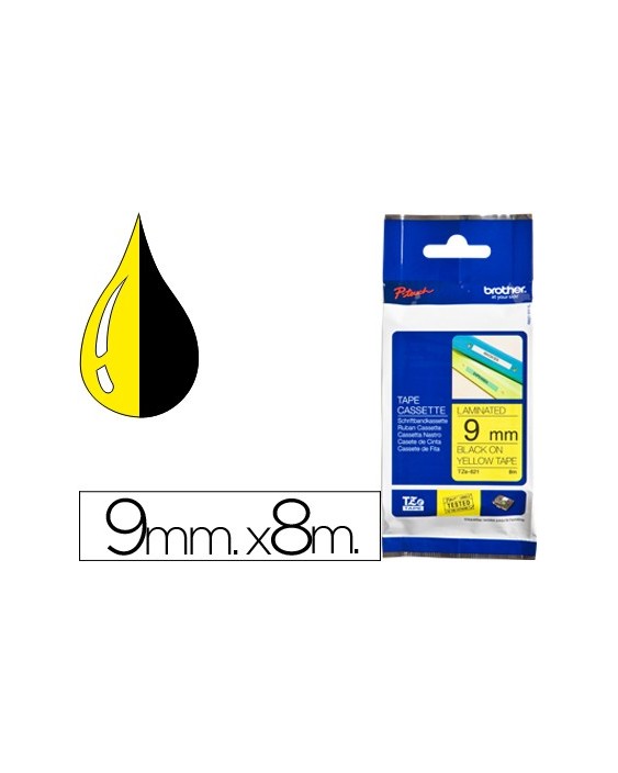 Cinta brother tze621 amarillo-negro 9mm longitud 8 mt