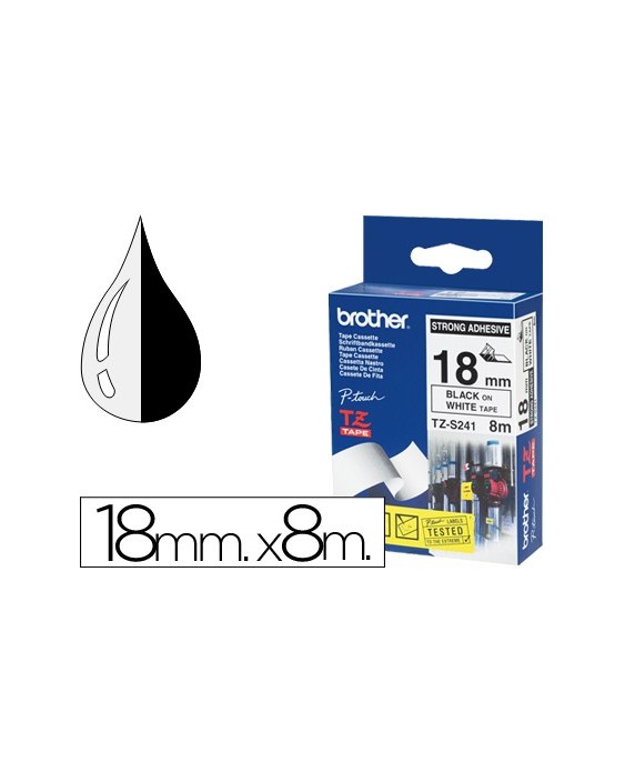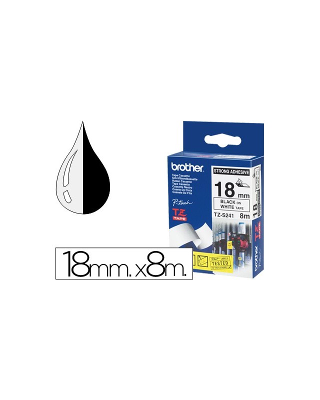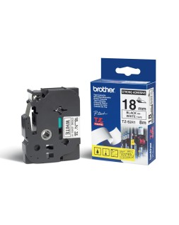 Cinta brother tzes241 blanco-negro 18mm longitud 8 mt superadhesiva